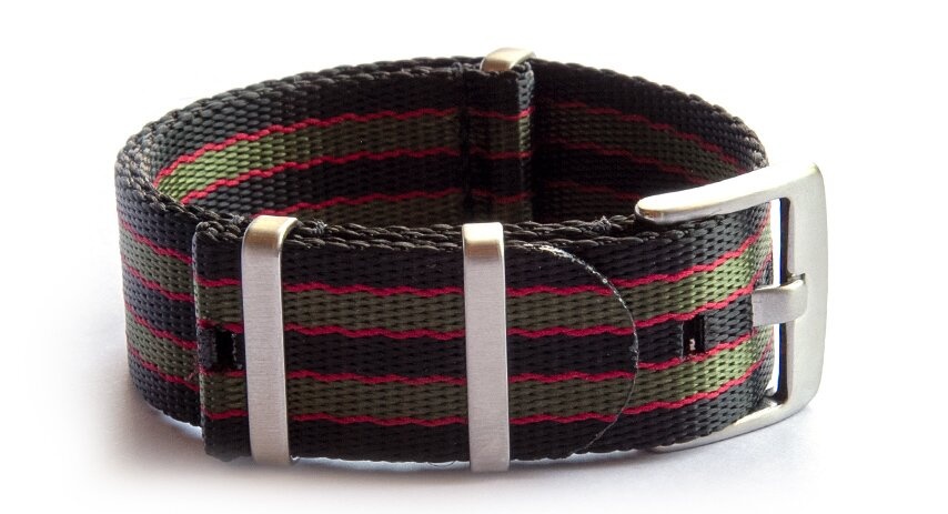 Premium balistic nylon NATO strap featuring silky-smooth "seatbelt" style nylon and floating first keeper.