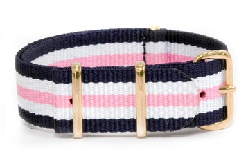 18mm Blue, White and Pink NATO Strap With Rose Gold Buckles