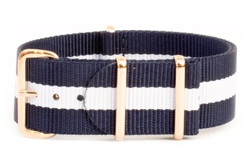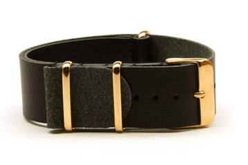 20mm Blue Leather NATO Strap With Black Pvd Buckles