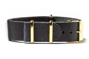 22mm Black Leather NATO Strap With Black Pvd Buckles